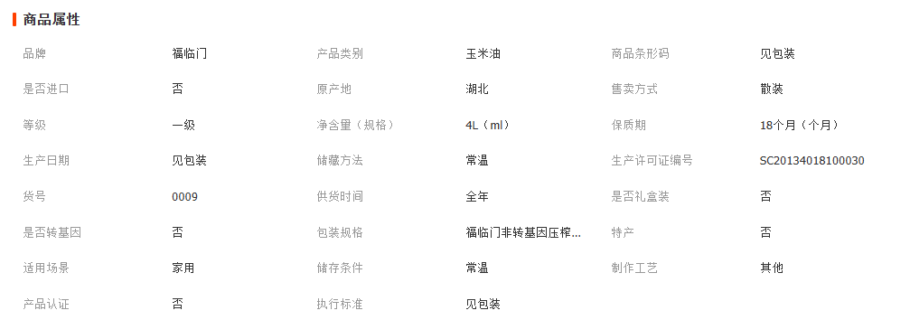 厂家批发中粮福临门黄金产地玉米胚芽油4L装非转基因压榨