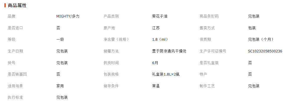 【新货】多力葵花籽油礼盒装1.8L×2瓶礼盒物理压榨喜宴团购