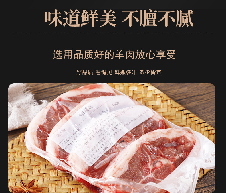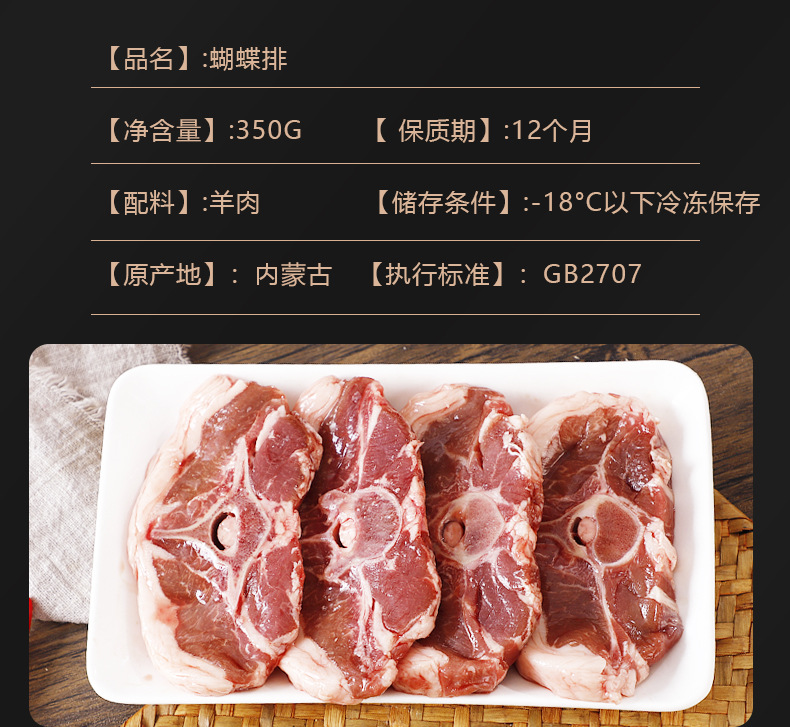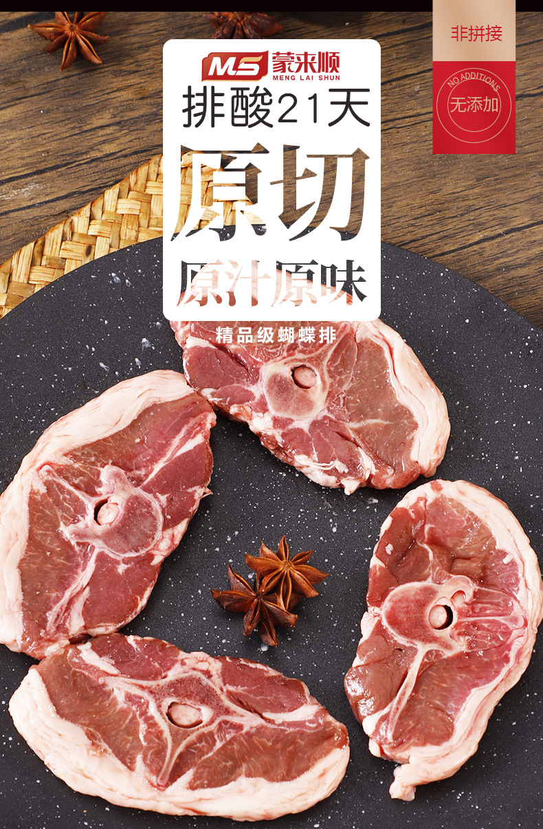 工厂直发 蒙来顺羊肉蝴蝶排整块原切法式羊肉冷冻烧烤半成品350g