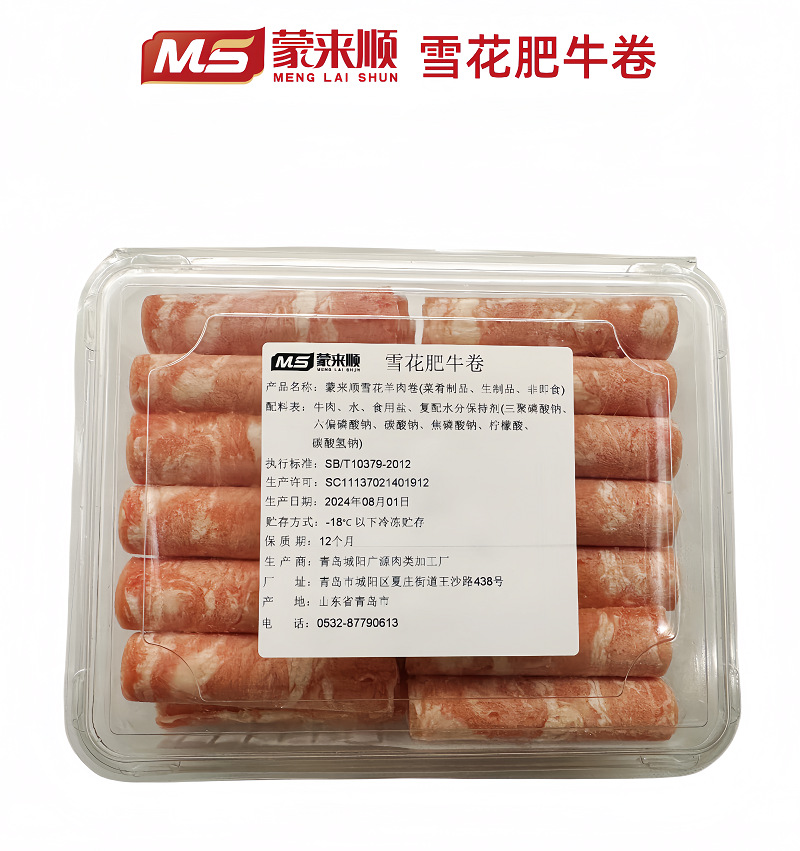 蒙来顺工厂直发 雪花肥牛卷整条牛肉片火锅店食材商用批发500G
