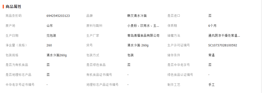 【韩式清水冷面】清福食品韩式风味小麦冷面 东北大冷面附带料包