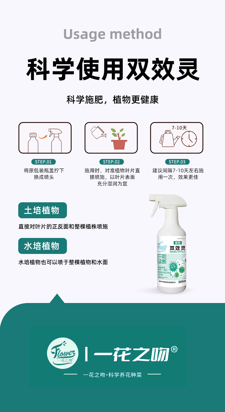 花卉绿植防黄叶掉叶双效灵免稀释既喷型治菌防菌广谱双效灵