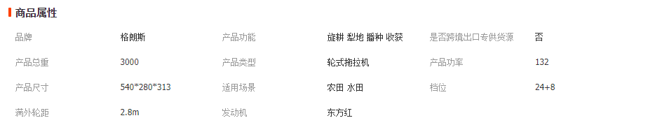 格朗斯1804四轮拖拉机 东方红国四六缸发动机 山地丘陵四驱旋耕机