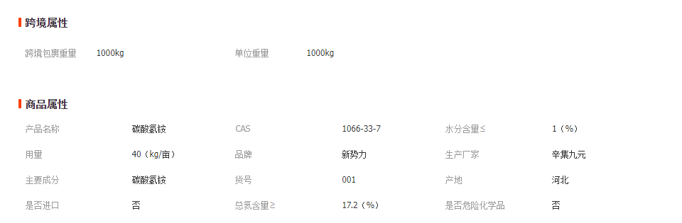 用途:用作氮肥,适用于各种土壤,可同时提供作物生长所需的铵态氮和二氧化碳,但含氮量低、易结块;用作分析试剂,也用于合成铵盐和织物脱脂;用作化学肥料;能促进作物生长和光合作用,催苗长叶,可作追肥,也可作底肥直接施用。