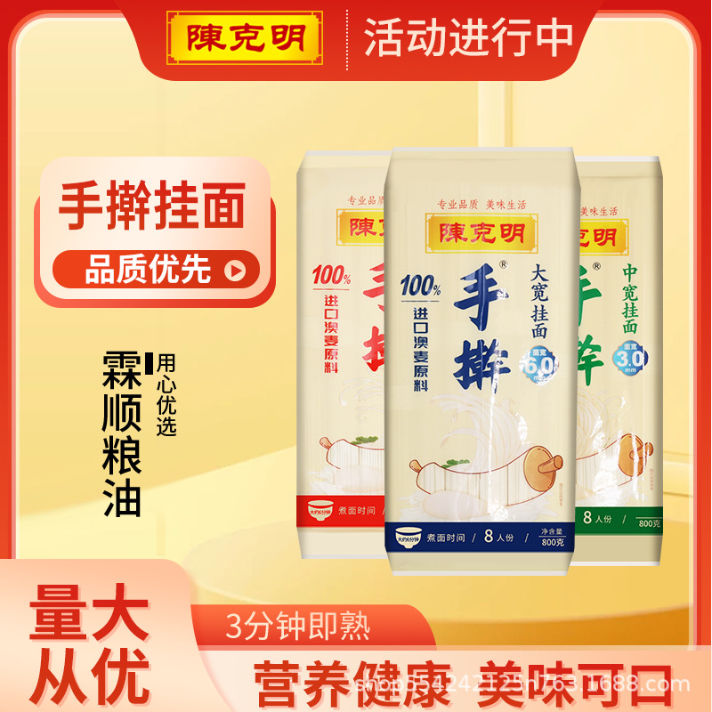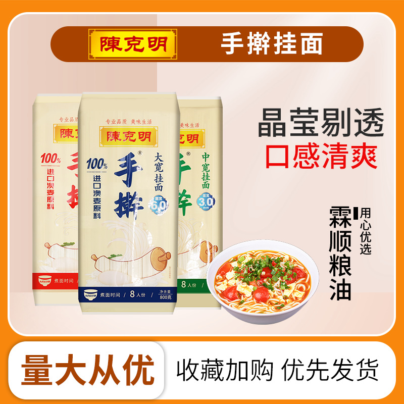陈克明手擀面800g椭圆中宽大宽细圆龙须面批发早餐面条挂面