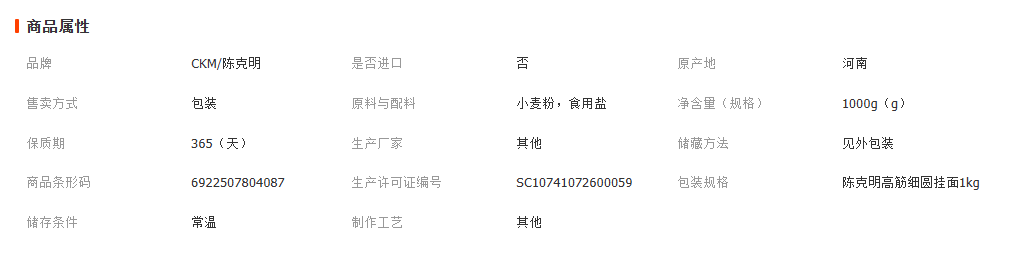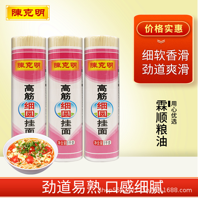 陈克明高筋细圆挂面面条1kg龙须面劲道爽滑批发汤面拉面速食
