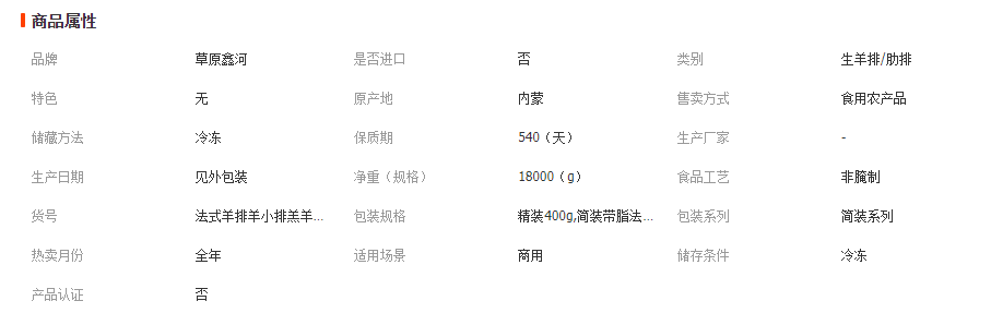 内蒙古草原鑫河法排小切羊排家庭装原切烧烤食材约18kg/箱羔羊排