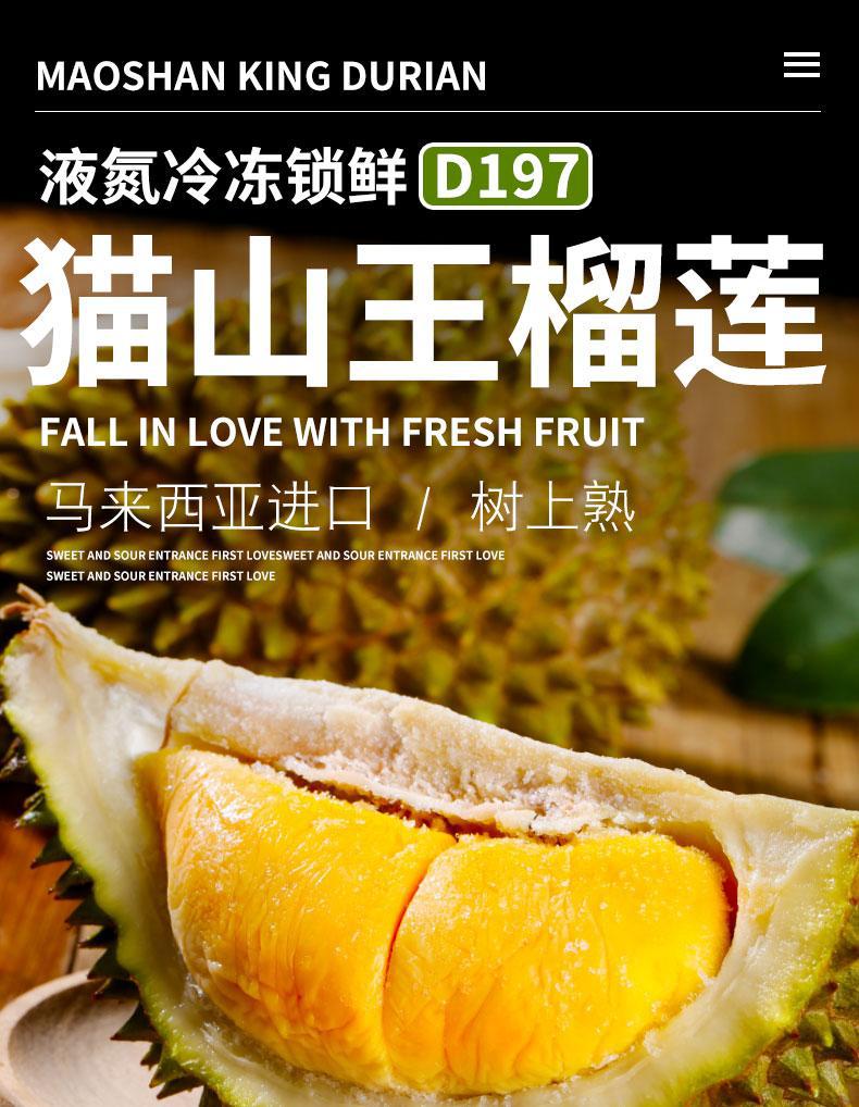 马来西亚猫山王d197正宗液氮4头5头6头整箱源头直供冷冻带壳整果