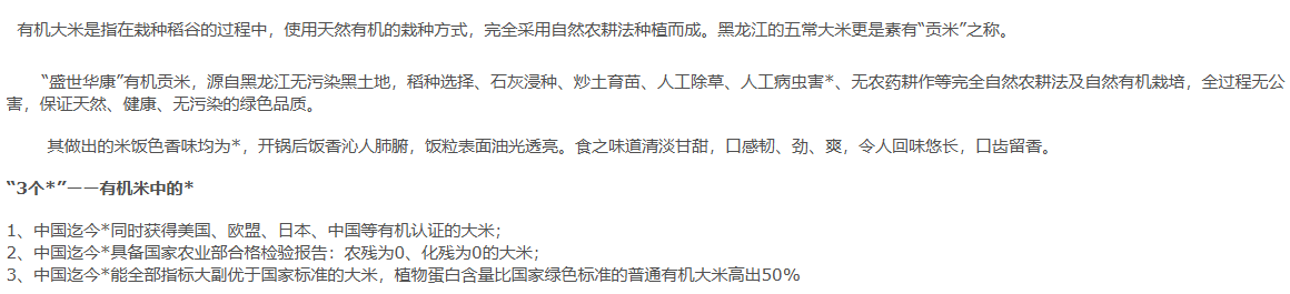 主营产品: 有机农产品 有机大米 有机食用油 有机豆类 有机杂粮类 有机蔬菜等有机农产品。