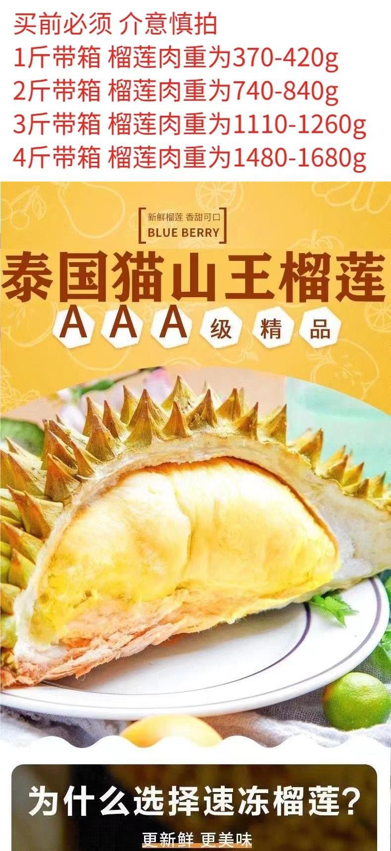 榴莲肉进口猫山王果肉当季有核无壳金枕泰国榴莲新鲜水果纯肉包邮