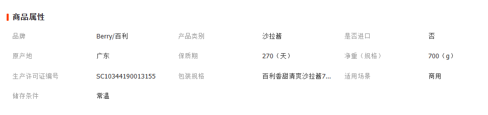 百利香甜清爽沙拉酱700g家用水果蔬菜鸡排寿司汉堡沙拉酱专用百丽
