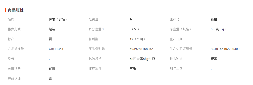 伊香新疆68团大米5kg水稻一级粳米香米颗粒饱满特产