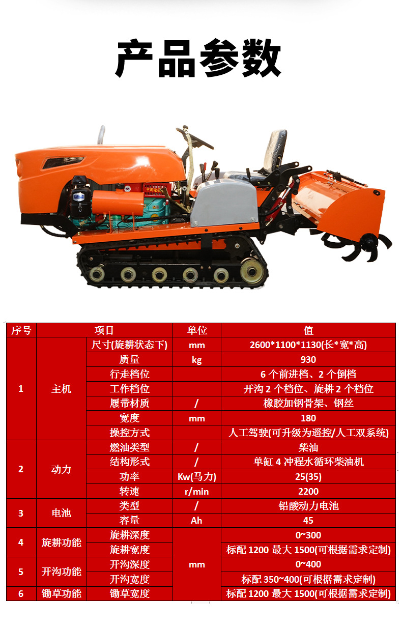 批发3TC-35-2履带式拖拉机开沟旋耕除草起垄水田两用履带拖拉机