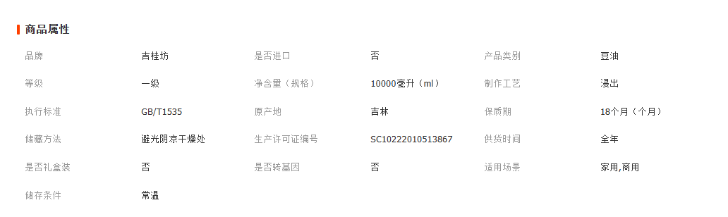 吉桂坊食用油东北大豆油桶装一级大豆油10升