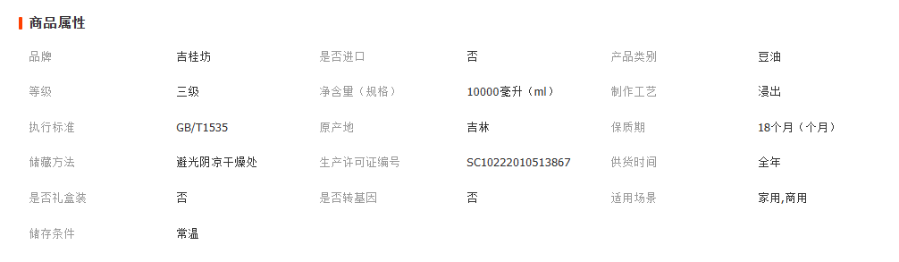 吉桂坊食用油东北大豆油桶装三级大豆油10升