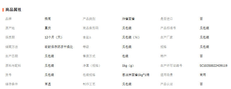 燕周葱油拌面酱1kg桶装干拌面葱香浓郁面馆同款家用开店商用批发