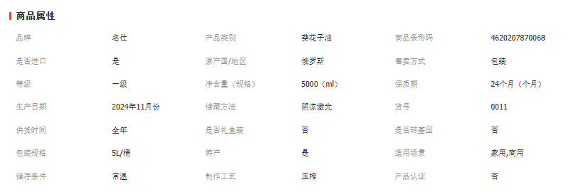 俄罗斯葵花籽油5L一级进口