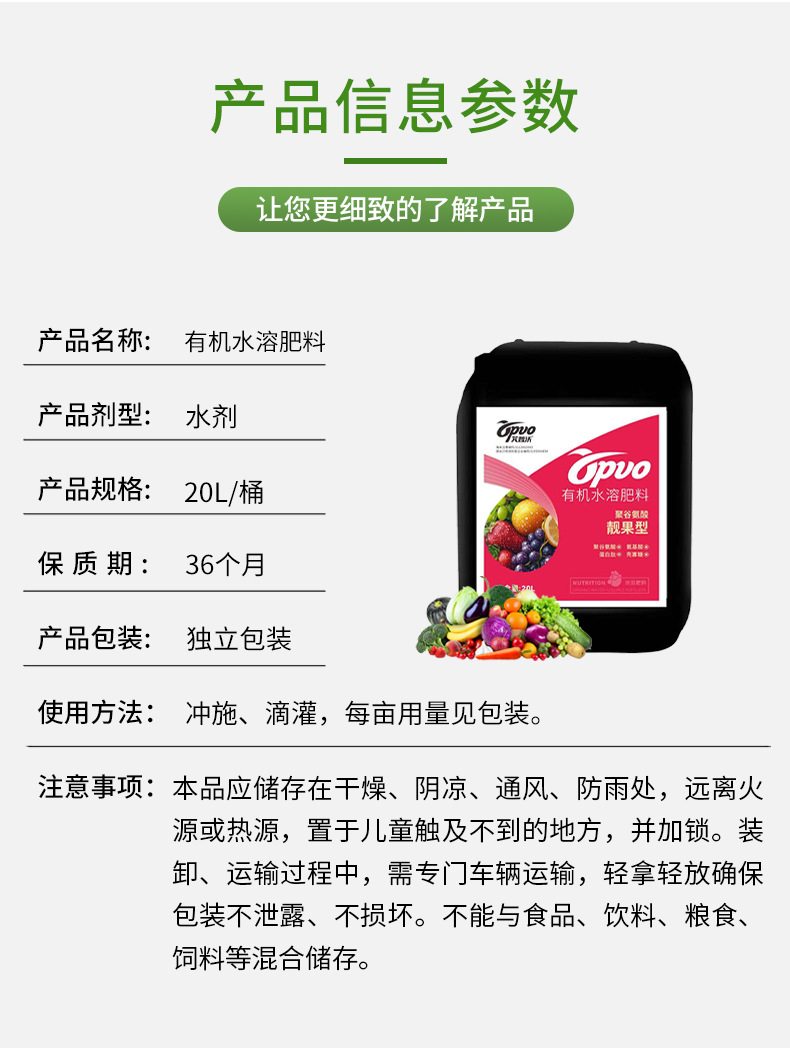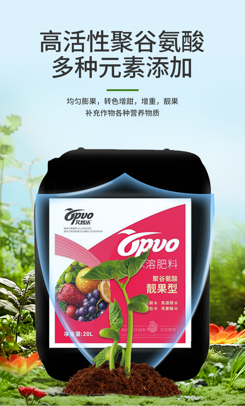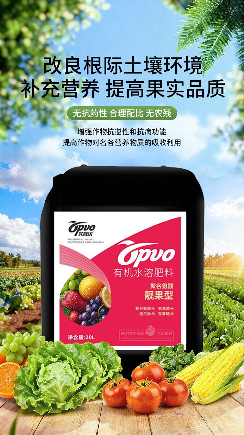 农业级靓果型有机水溶肥瓜果冲施肥膨果增甜有机水溶肥聚谷氨酸