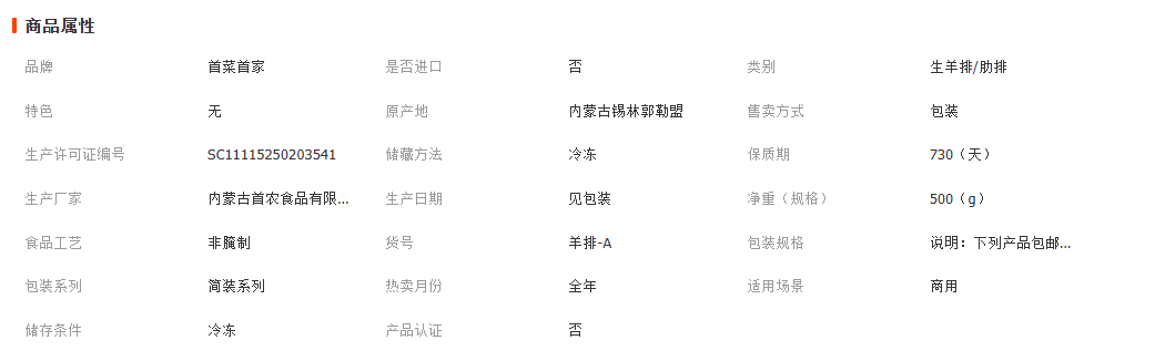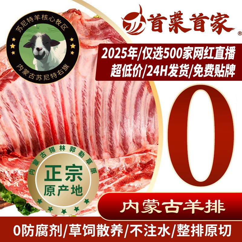 首菜首家苏尼特羊排1斤/件法式小切羔羊肋排草原散养烧烤食材厂价 6件