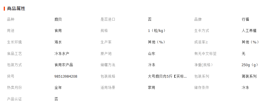 特大号扇贝肉新鲜速冻带黄无冰衣海鲜鲜活冷冻野生真空包装250g 5斤、