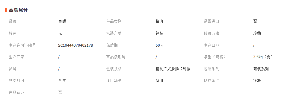 宣上皇优质广式腊肠纯肉微甜无淀粉天然肠衣制作广东广式腊肠批发 1份