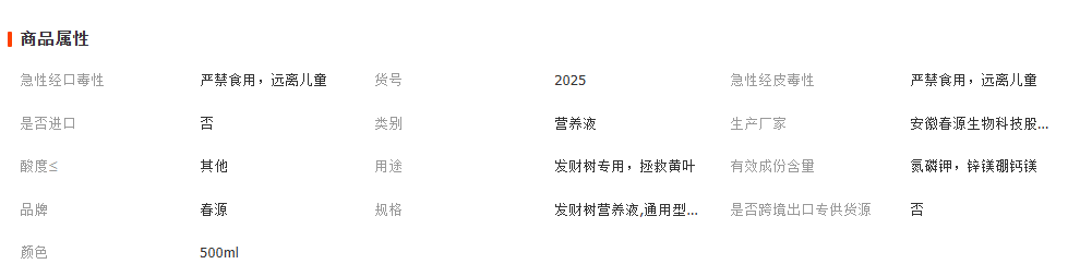 春源浓缩发财树专用营养液植物招财树幸福树营养液壮苗绿叶肥料 1瓶