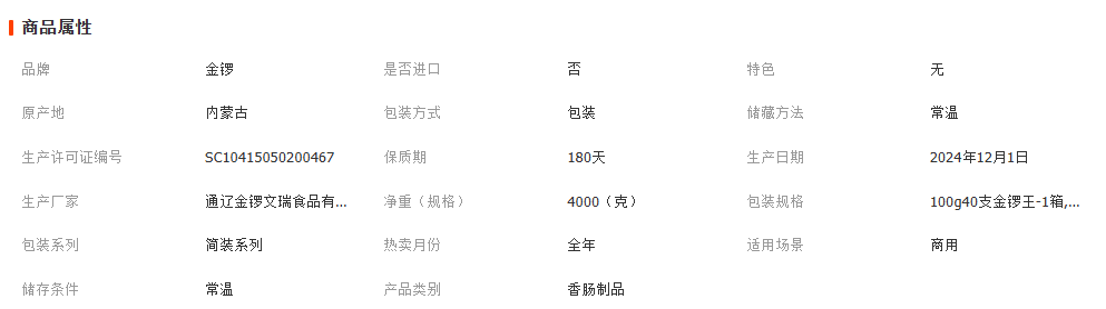 金锣特香王火腿肠70g整箱批发即食泡面拍档特级香肠70g 1份