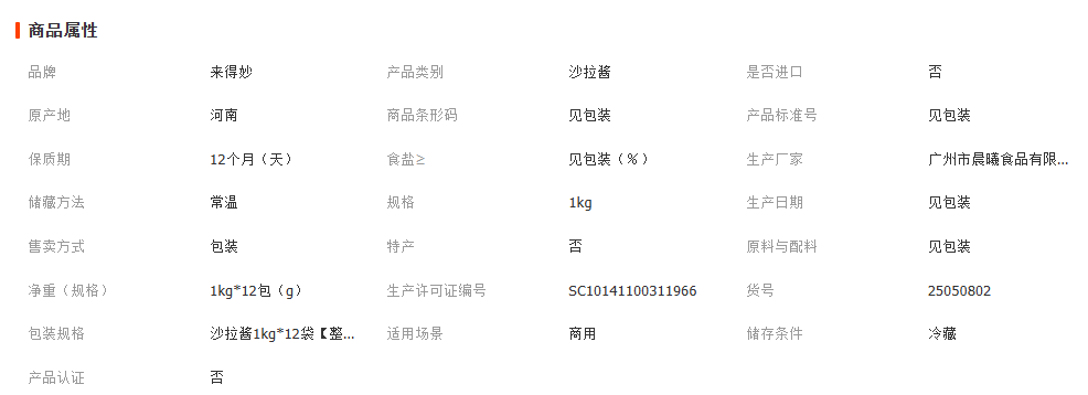 来得妙肉松小贝沙拉酱1kg*12袋制作中式糕点蛋糕夹心专用商用批发