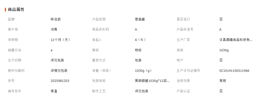 好味黑胡椒酱1030g整箱商用袋装摆摊开店专用黑椒牛排牛柳调味酱 1箱