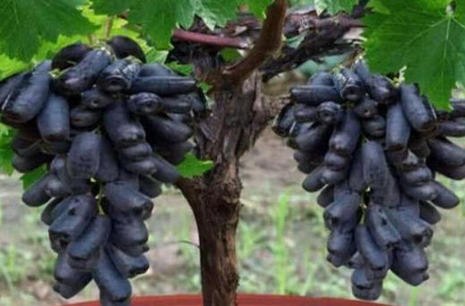 如果你家的阳台空间有限,那么夏黑葡萄会是一个不错的选择。它的果实相对较小,但紧凑圆润,色泽乌黑发亮,犹如一颗颗精致的黑珍珠。夏黑葡萄的甜度很高,几乎感觉不到酸味,口感脆爽,吃起来十分过瘾。
