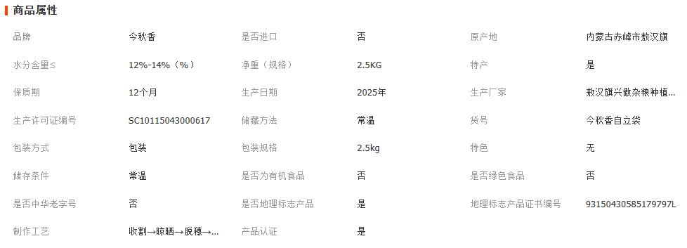 今秋香内蒙古赤峰敖汉小米5斤自立袋农家一类小米杂粮K1黄小米