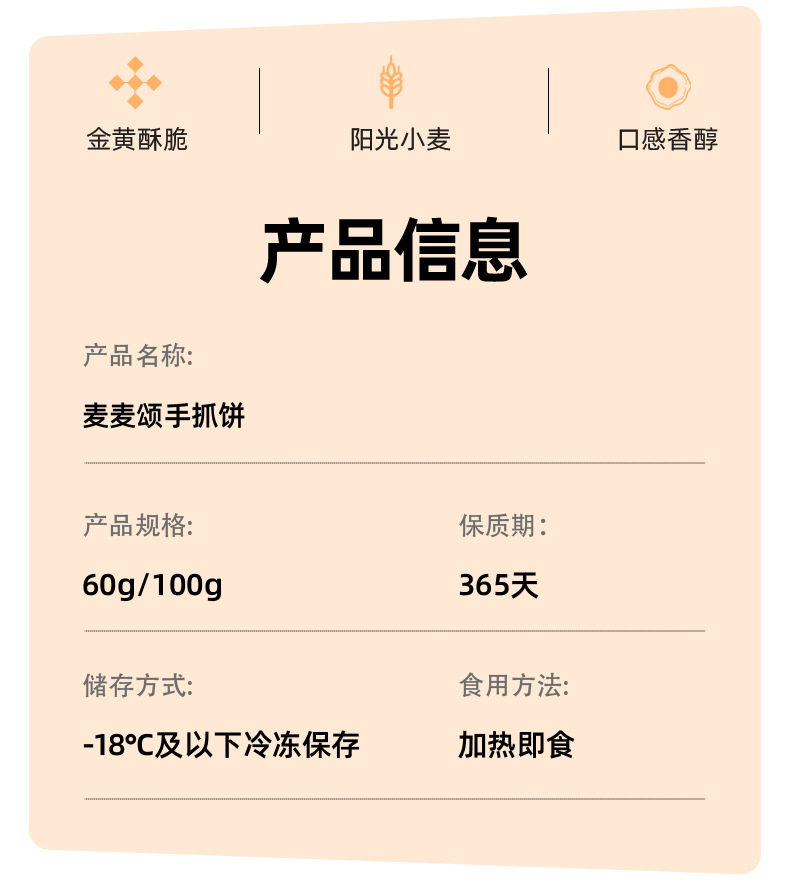 本网页所展示的有关【速冻手抓饼多口味款家庭装早餐台湾美食半成品葱香饼营养手撕煎饼_休闲食品_深圳市麦麦食品有限公司】的信息/图片/参数等由农芯链的会员【深圳市麦麦食品有限公司】提供,由农芯链会员【深圳市麦麦食品有限公司】自行对信息/图片/参数等的真实性、准确性和合法性负责,本平台(本网站)仅提供展示服务,请谨慎交易,因交易而产生的法律关系及法律纠纷由您自行协商解决,本平台(本网站)对此不承担任何责任。您在本网页可以浏览【速冻手抓饼多口味款家庭装早餐台湾美食半成品葱香饼营养手撕煎饼_休闲食品_深圳市麦麦食品有限公司】有关的信息/图片/价格等及提供【速冻手抓饼多口味款家庭装早餐台湾美食半成品葱香饼营养手撕煎饼_休闲食品_深圳市麦麦食品有限公司】的商家公司简介、联系方式等信息。
