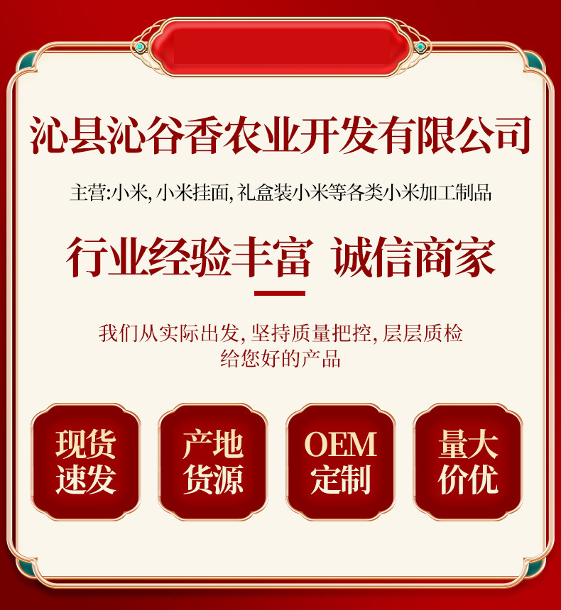 本网页所展示的有关【山西沁州黄小米500克真空包装新鲜小米五谷杂粮农家小米粥小黄米_小米_沁县沁谷香农业开发股份有限公司】的信息/图片/参数等由农芯链的会员【沁县沁谷香农业开发股份有限公司】提供,由农芯链会员【沁县沁谷香农业开发股份有限公司】自行对信息/图片/参数等的真实性、准确性和合法性负责,本平台(本网站)仅提供展示服务,请谨慎交易,因交易而产生的法律关系及法律纠纷由您自行协商解决,本平台(本网站)对此不承担任何责任。您在本网页可以浏览【山西沁州黄小米500克真空包装新鲜小米五谷杂粮农家小米粥小黄米_小米_沁县沁谷香农业开发股份有限公司】有关的信息/图片/价格等及提供【山西沁州黄小米500克真空包装新鲜小米五谷杂粮农家小米粥小黄米_小米_沁县沁谷香农业开发股份有限公司】的商家公司简介、联系方式等信息。