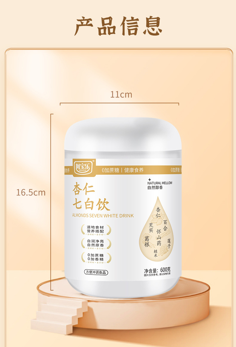 本网页所展示的有关【阿宝乐杏仁七白饮600g罐装谷物营养懒人冲泡即食早餐代餐餐冲饮_休闲食品_河南阿宝食品有限公司】的信息/图片/参数等由农芯链的会员【河南阿宝食品有限公司】提供,由农芯链会员【河南阿宝食品有限公司】自行对信息/图片/参数等的真实性、准确性和合法性负责,本平台(本网站)仅提供展示服务,请谨慎交易,因交易而产生的法律关系及法律纠纷由您自行协商解决,本平台(本网站)对此不承担任何责任。您在本网页可以浏览【阿宝乐杏仁七白饮600g罐装谷物营养懒人冲泡即食早餐代餐餐冲饮_休闲食品_河南阿宝食品有限公司】有关的信息/图片/价格等及提供【阿宝乐杏仁七白饮600g罐装谷物营养懒人冲泡即食早餐代餐餐冲饮_休闲食品_河南阿宝食品有限公司】的商家公司简介、联系方式等信息。