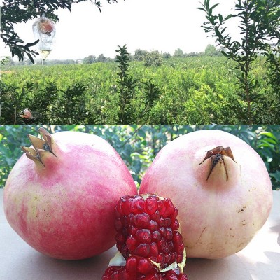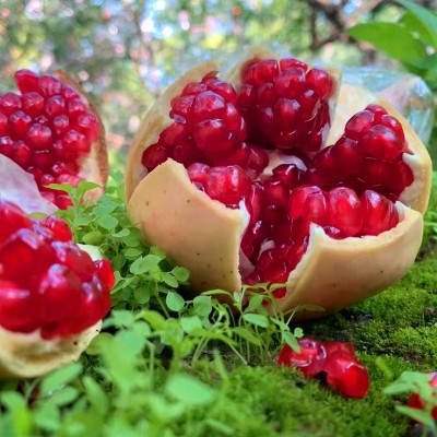今年由于产区干旱高热,临潼石榴颜色略淡为粉红色籽,但果子口感真的很好更甜更香哦